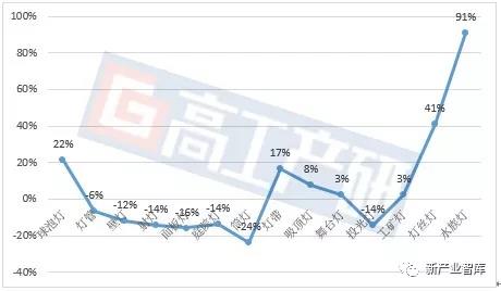 2018年前三季度出口美国各类LED灯具的增长情况